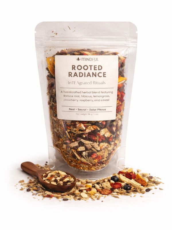 Rooted Radiance is a warming, grounding herbal tea crafted to support emotional stability, creativity, and inner strength. Designed to nourish the lower chakras, this blend helps calm anxious energy while gently reigniting your sense of confidence and creative flow.